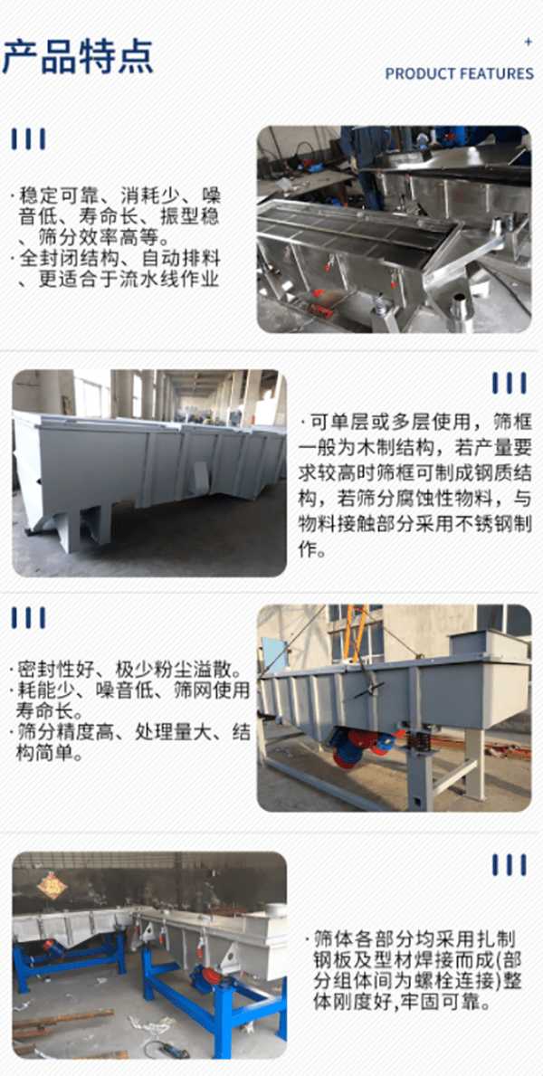 直線振動篩能夠持續(xù)生產(chǎn),單層或多層無需人工分級篩選;全密閉結構,無揚塵溢;使用振動電機節(jié)能低噪;開動快速,直線振動篩在生停止運行平穩(wěn);安裝簡單,操作和維護便于;篩網(wǎng)憑借率高,單位面積大,不易睹眼,且改換輕易;篩選分級精度達96%以上,處置量大。
