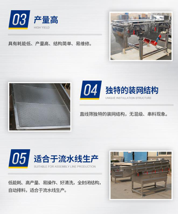 1540直線振動(dòng)篩系列直線振動(dòng)篩利用振動(dòng)電機(jī)激振作為振動(dòng)源, 使物料在篩網(wǎng)上被拋起,同時(shí)向前做直線運(yùn)動(dòng),通過(guò)多層篩網(wǎng)產(chǎn)生數(shù)種規(guī)格的篩上物、篩下物,分別從各自的出口排出。我公司擁有成熟的生產(chǎn)鏈,自主研發(fā)高品質(zhì)振動(dòng)篩設(shè)備。歡迎您來(lái)洽談、合作。