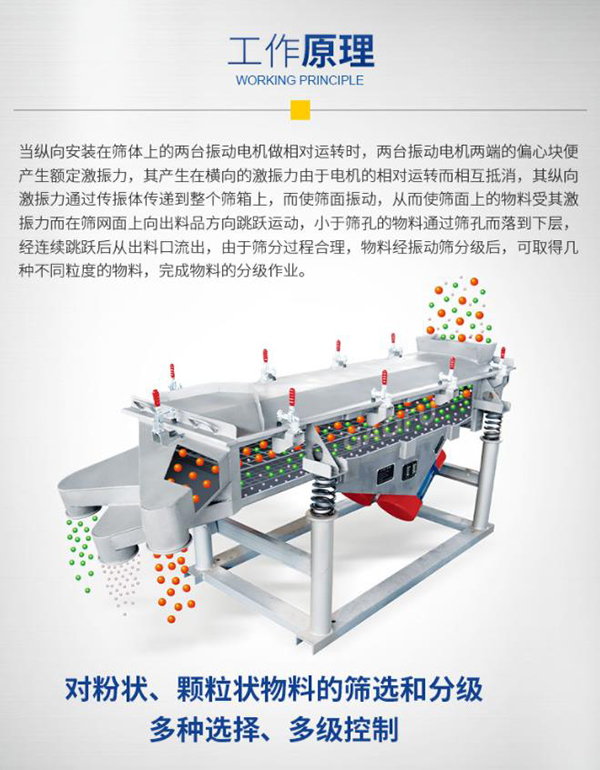 3、物料在篩面的行程長(zhǎng),篩分精度高、處理量大